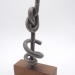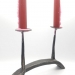 Robuuste metalen kaarsenstandaard voor op tafel.